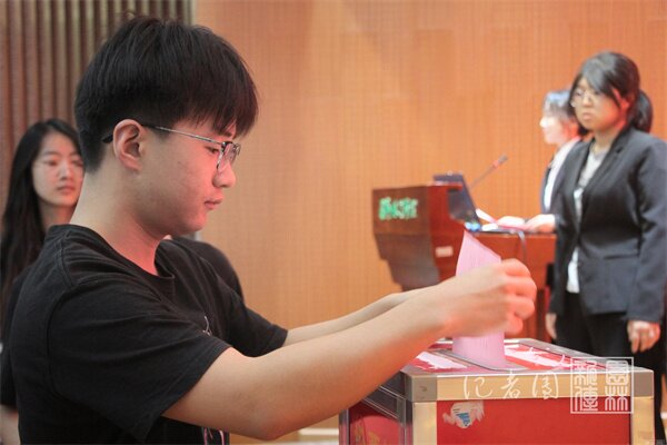 在无记名投票环节中,全体代表根据候选人的演讲和资历进行了投票。经过计票和监票环节,最终韦祎、沈亦知和黄晨豪成功当选为新一届学生会主席团成员。