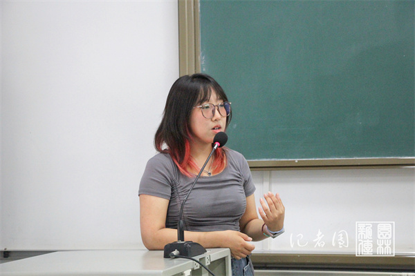 来自园林2203班的邹璇曾是学通社记者,她向各班公益委员讲解了如何撰写新闻稿。她以自己写运动会闭幕式新闻稿的经历为例,详细地阐述了一篇新闻稿的产生过程,包括了解基本信息、获取材料、现场记录观察、结束后采访和成稿五个部分。邹璇以自己的过往经历现身说法,讲述自己曾由于前期准备不充分导致新闻稿产出不及时,以此强调新闻稿的时效性之关键。在针对大型会议新闻稿的内容,她翔实解说此类新闻稿的基本格式,并特别指出要少发议论,多阐事实,突出文章的客观性。此外,在行文用词的规范性上,邹璇建议大家可以多用动词以提高结构严谨性,增加语言的三维效应,她还表示,合时宜的文章篇幅亦是尤为重要的,将新闻信息简明扼要地传达出来可以有效提高新闻稿的可读性。
