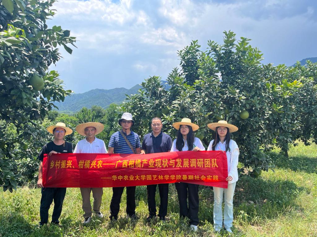 【核心提示】实施乡村振兴战略是以习近平同志为核心的党中央对“三农”工作作出的重大决策部署,为推进柑橘产业高质量发展,实现乡村振兴,kaiyun开云官方网站果树栽培团队硕士研究生李雨佳及博士研究生韩晗赴广西暑假社会实践团,在国家柑橘产业岗位科学家、园林院刘永忠教授的带领下,来到广西桂林市进行产业调研,与当地企业、种植户及科研人员进行交流,深入了解广西的柑橘产业现状与发展。
