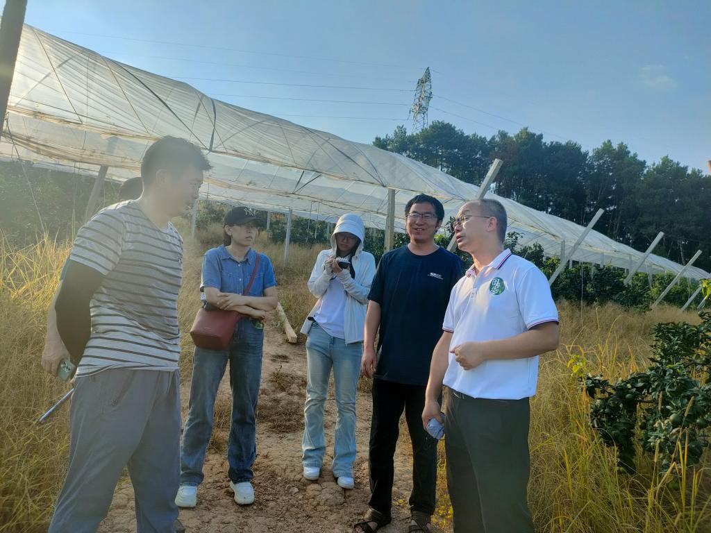 随后,实践团来到恭城瑶族自治县的桂林鹏宇兄弟高科技柑桔生态观光农场,此农场作为恭城县政府指定的柑橘育苗点,常年为恭城县广大农户提供优质无病柑橘苗木,带动了恭城县20多万亩柑橘产业的发展,实现民“富”县“强”。农场老板柴寿海表示教给农民种植技术,实现乡村振兴,达到“帮助农民、快乐自己”的目的。农场与中国农业科学院柑桔研究所、广西特色作物研究院等科研院所合作,栽培技术有专家带领,向数字化方向发展,日后有望应用巡园机器人管理农场。但目前最大的问题是除草时经常将水肥管道割断,只能尽量避免。刘永忠老师对此表示,草的管理与水肥一体化管理的冲突亟待解决。