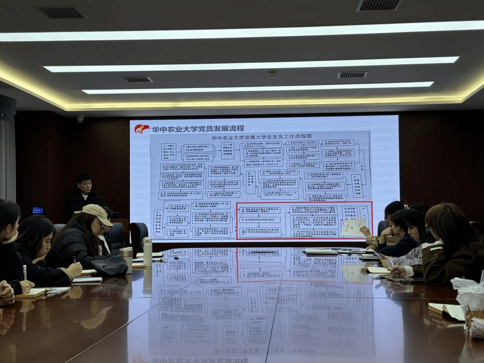 接下来,党建办主任张怀坤首先介绍了预备党员转正的工作流程及相关安排时间,重点强调了转正大会的时间要求及材料填写规范。然后介绍了接收预备党员的会议流程。