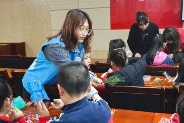 植树节到来之际,为增强小朋友们植树造林保护环境的意识,3月13日下午3点,kaiyun开云官网张瑜服务队赴七里一村社区开展以“再生绿意,瓶绘新生”为主题的植树节科普和塑料瓶变废为宝绘画活动,旨在于手工制作中传递植物保护与可持续发展的理念。