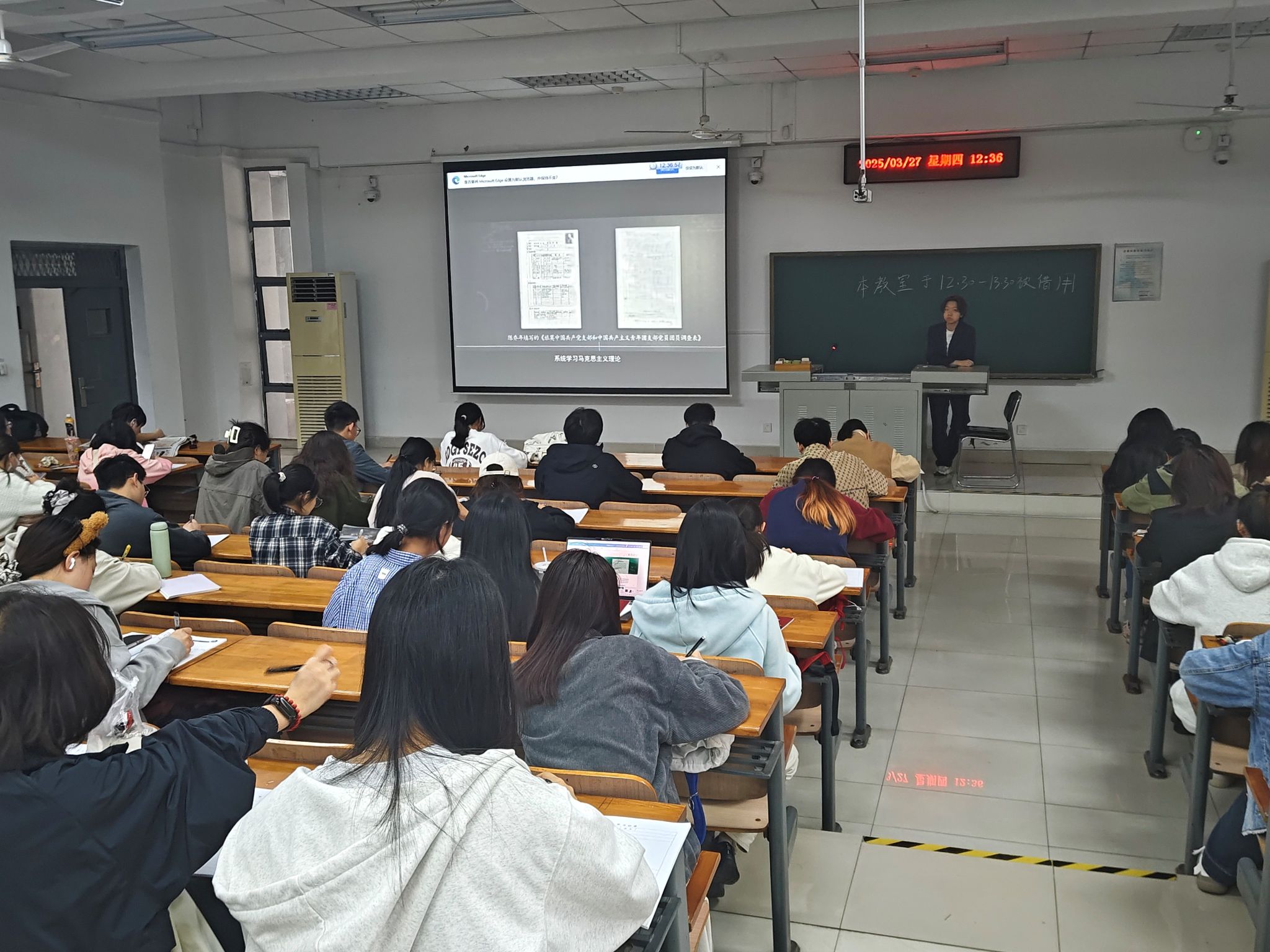 2025年3月27日,kaiyun开云官方网站组织入党积极分子于三教C105教室开展了“周四理论学习日”活动。本次活动包括了观看视频,阅读报纸,有奖竞答三个环节。本次理论学习有利于入党积极分子们及时了解党的方针政策、培养政治觉悟、增强信仰力量,提高对党的归属感与使命感。