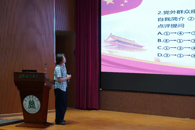 锤炼业务本领,提升履职能力。在“实践技能风采展示”环节,各党支部副书记、支委现场抽取党务知识题目进行限时作答。题目分为客观题和主观论述题,涵盖党务工作规范、党员发展流程、党史理论基础知识等内容,全面考察了学生党员干部的业务素养和政治理论水平。各支部参赛选手沉着应对、对答如流,充分展现了扎实的党务功底和过硬的政治素质,进一步践行了“以赛促学、以学促行”的竞赛宗旨。