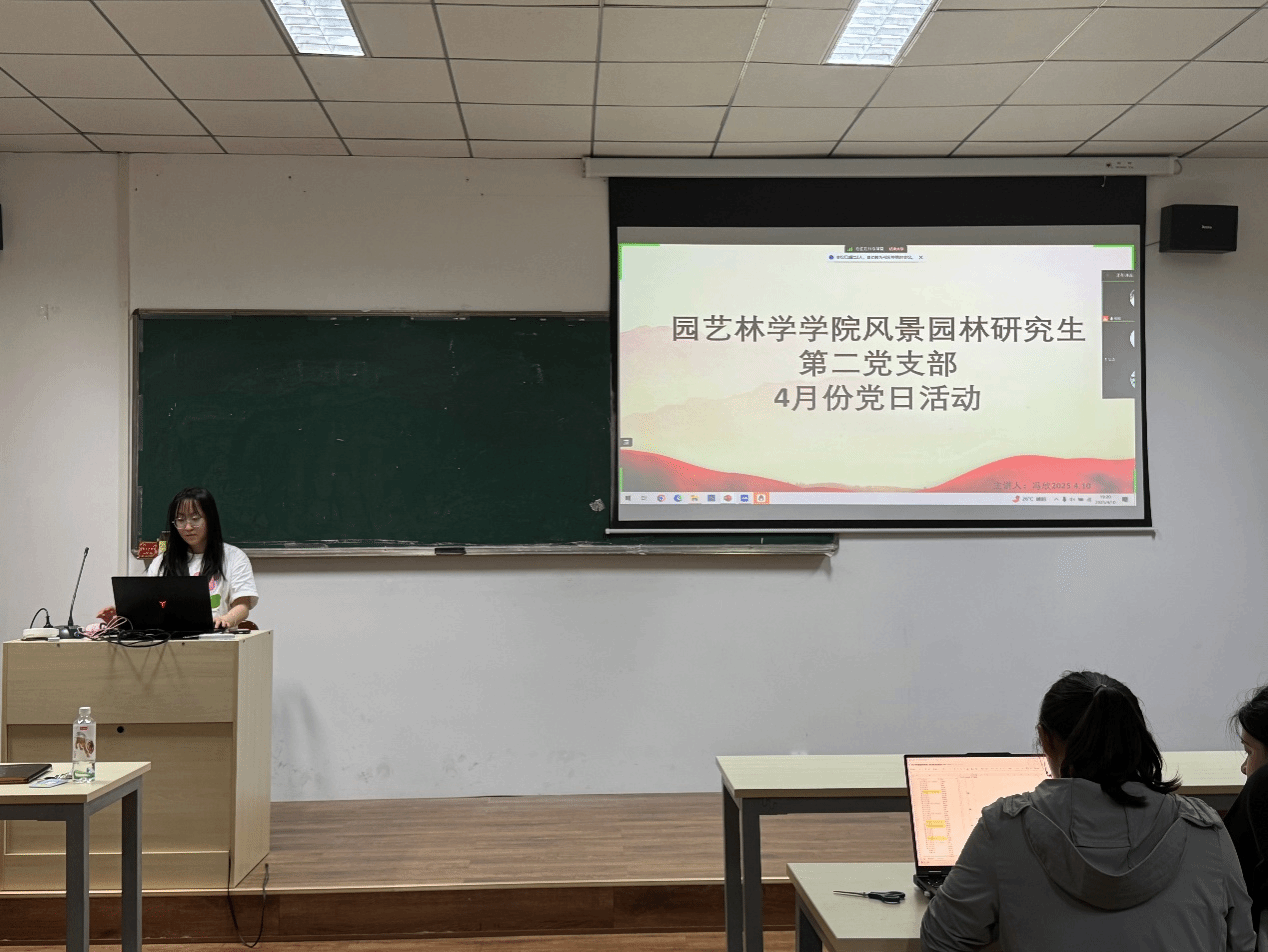 4月10日,风景园林研究生第二党支部在景园楼309教室开展四月主题党日活动,会议由党支部书记冯欣同志主持。