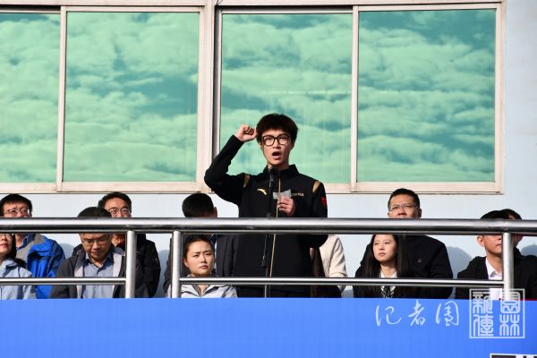 入场仪式结束后,在场师生全体肃立,面向国旗,齐唱国歌。随后,运动员代表、文法学院的黄铁涵同学与裁判员代表、体育部的林英诗雨老师先后上台宣誓,分别表达了尊重规则、顽强拼搏以及公平执裁、确保赛事顺利进行的坚定决心。