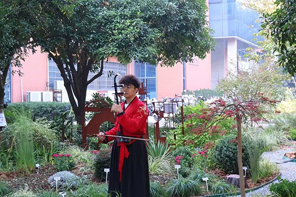 随后进行的艺术表演环节将现场气氛推向高潮。首先,园林2302班学生赵耀(校民乐团成员)登台演奏二胡曲目《兰亭序》,丝竹之音与园林的雅致意境相得益彰,让在场观众在婉转与悠扬的曲调中感受传统园林的文化底蕴;随后,校京剧社张美冬老师(作物遗传育种专业教师)带来经典曲目《游园惊梦》,音韵流转间将园林空间的移步换景之美演绎得淋漓尽致,引发全场掌声;最后,园林2301班学生艾则麦提(全国舞蹈比赛冠军)献上活力四射的新疆舞蹈,矫健的舞姿与园林的开放格局相呼应,展现了现代园林兼容并蓄的时代特质。精彩的文艺表演成为了展现园林美学内涵的独特载体,三场表演层层递进,从传统到现代,从意境到空间,全方位诠释了园林艺术的多元魅力,也为师生们带来了一场视听盛宴。