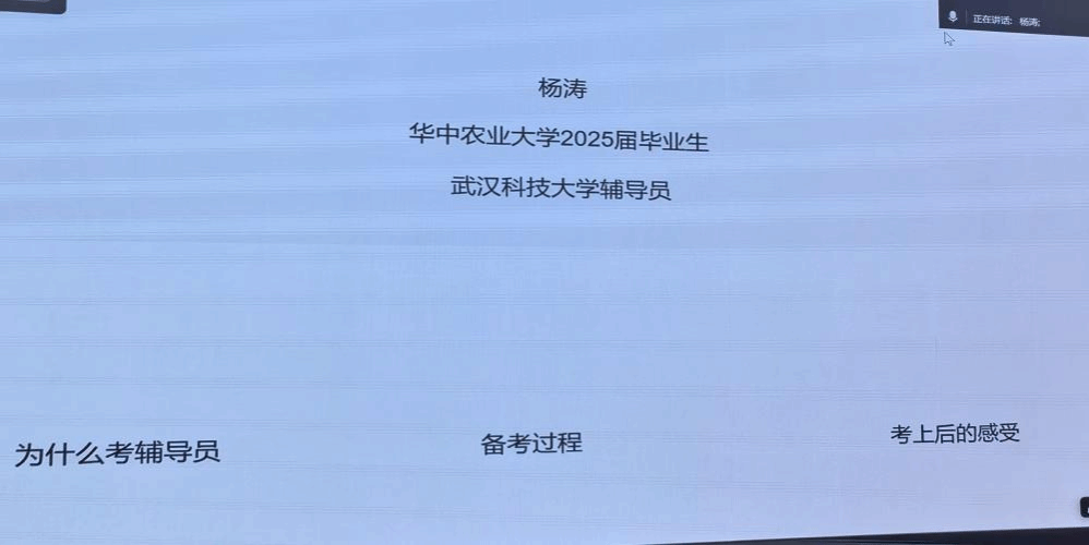 在经验分享环节,杨涛学长结合自己备考武汉科技大学的经历,从信息搜集、笔试准备到面试技巧等多个方面进行了细致讲解。他建议同学们善用各类招聘公众号和信息平台,及时掌握招考动态;笔试阶段要注重知识体系的系统构建,面试前则可参加专业培训以提升表达与应变能力。此外,他还分享了如何在求职压力中调节情绪、制定高效学习计划等实用建议。