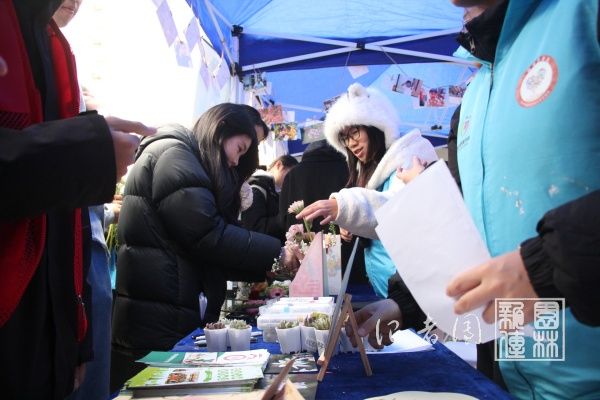 活动还设置了插花体验环节。张瑜服务队的志愿者们准备了玫瑰、非洲菊、康乃馨、满天星等花材,组织现场师生进行了简单的插花体验。在一修一剪、搭配构思之间,志愿服务的温情与美好在花香中悄然流淌。湖北工业大学“石榴籽”志愿服务队成员也来到kaiyun开云官网展位交流,他们表示,kaiyun开云官网项目设计既生动有趣,又深度融合专业知识,为其他高校志愿服务项目的创新实践提供了许多启发。