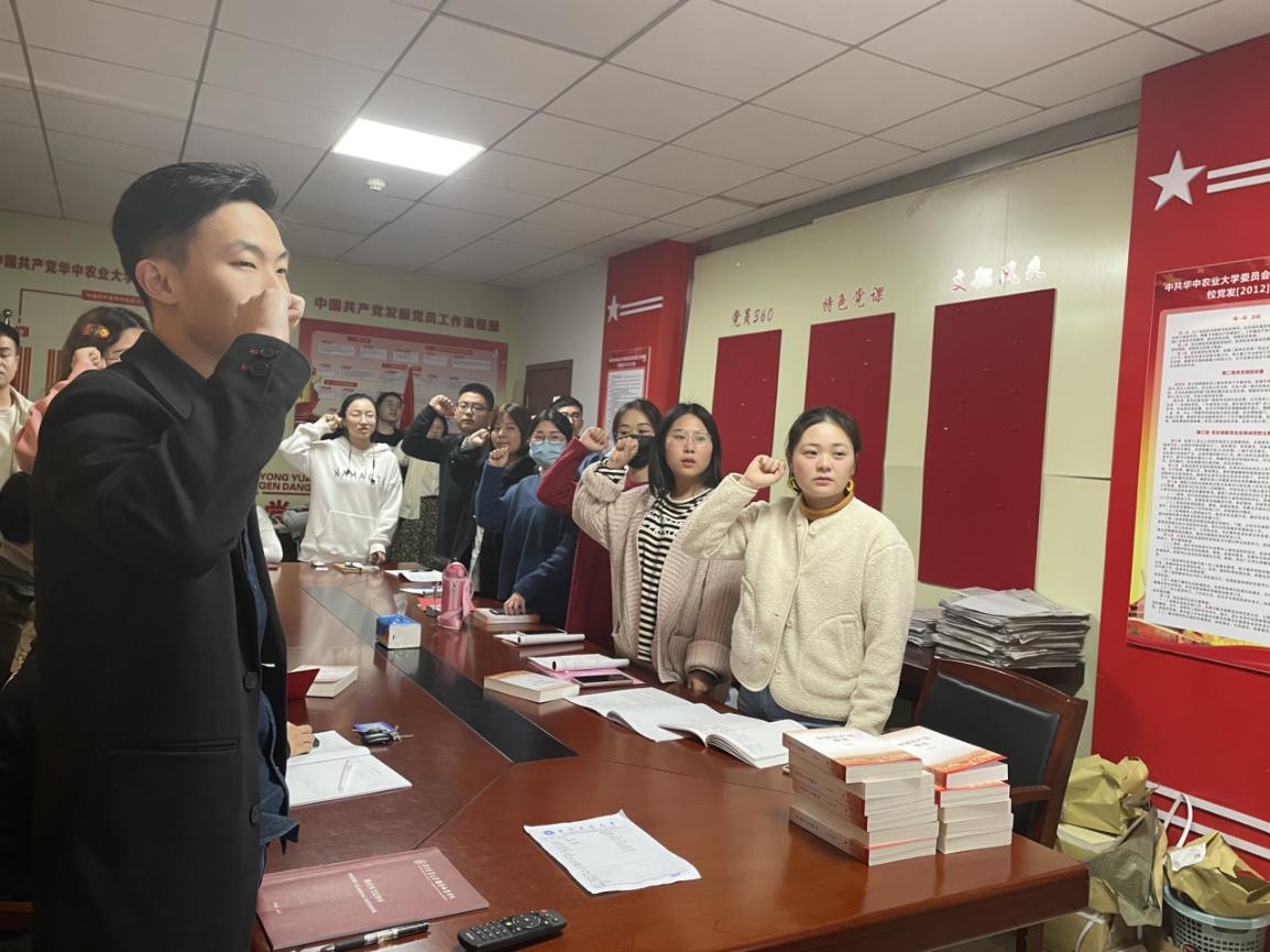 会议最后党支书陈麒慧带领党员重温了一遍入党誓词。看了这些榜样,再读入党誓词,仿佛更加明白了我们共产党存在的意义,更加坚定了我们作为一名共产党人的决心。正像习近平总书记所说:“关键时刻要冲得出去,危难时刻要豁得出去,这才是共产党人。”