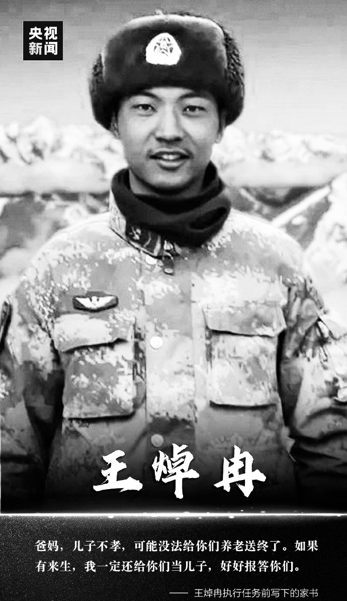 王焯冉(1996年-2020年6月),男,河南省漯河市人,中国人民解放军某机步营战士,一等功臣,烈士。2016年,年轻的王焯冉走上边关。2020年6月,23岁的王焯冉渡河增援一线,第4次蹚河时有人被激流冲散,王焯冉和战友拼尽全力将3名战友推上岸,自己却被冻得几乎失去知觉,突然,王焯冉一只脚被卡在了水下巨石缝中,永远倒在了刺骨的激流中。2021年2月,中央军委给王焯冉追记一等功。