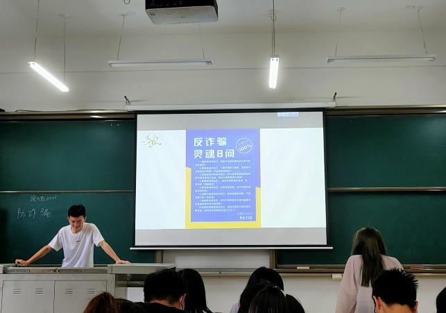 近来,校内发生多起电信诈骗案件,为提高同学们防范电信诈骗意识,由辅导员组织、班委成员筹划、班主任老师参与,20级全体班级于第14周开展反电信诈骗主题教育班会。