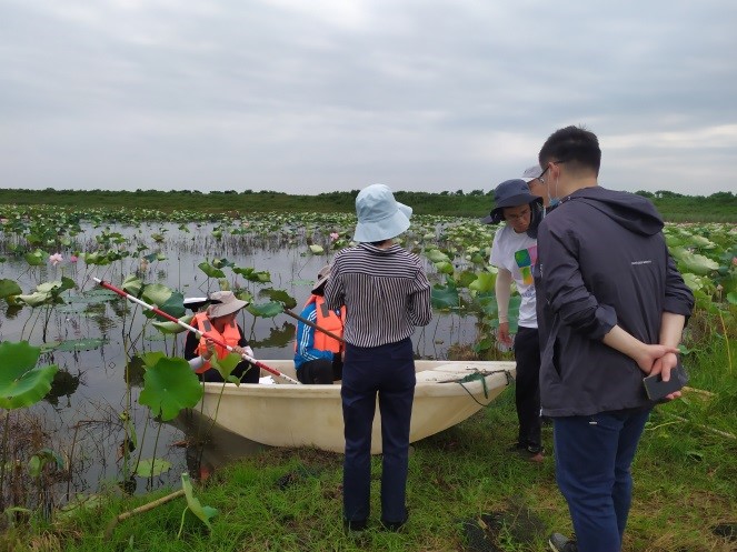 此外,团队成员以满足典型水鸟的生境需求为目标,以后续湿地保护改造为落脚点,以武汉市观鸟协会提供的水鸟种群动态的观测数据为依据,通过乘船到水上对沉湖湿地进行水鸟生境调查,记录水深、温度、湿度等数据,为下一步沉湖湿地典型水鸟种群的保护提供有力支撑。