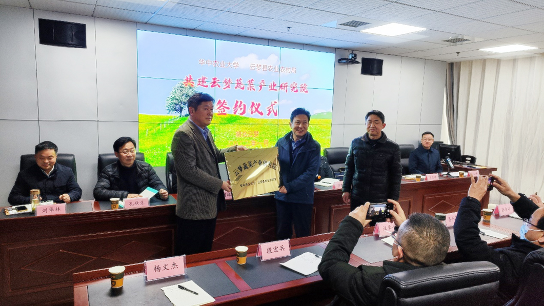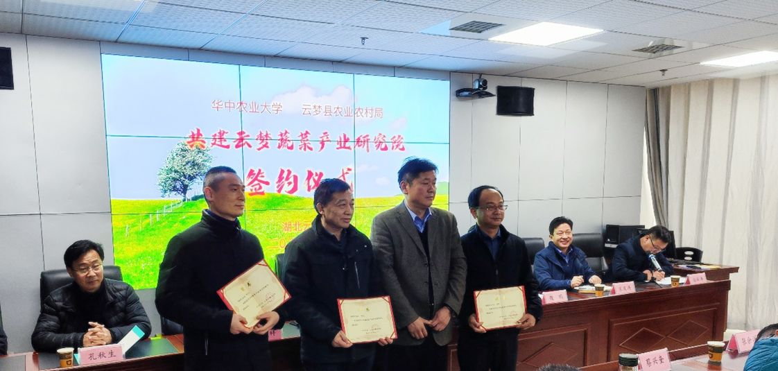 为充分发挥学校科教和人才优势,着力推进农科教紧密结合、产学研有效对接,积极探索地校联动合作发展长效机制,助力疫后重振和蔬菜强县建设,共同推进乡村振兴战略实施,1月18日,kaiyun开云官方网站和云梦县农业农村局联合共建“云梦蔬菜产业研究院”授牌仪式在云梦县农业农村局305会议室举行。