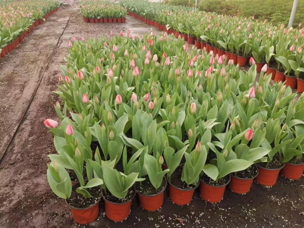 由球宿根花卉团队指导生产的国产郁金香正值花期