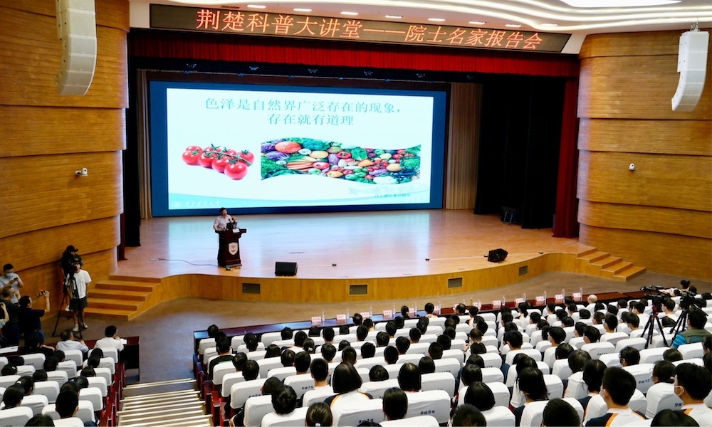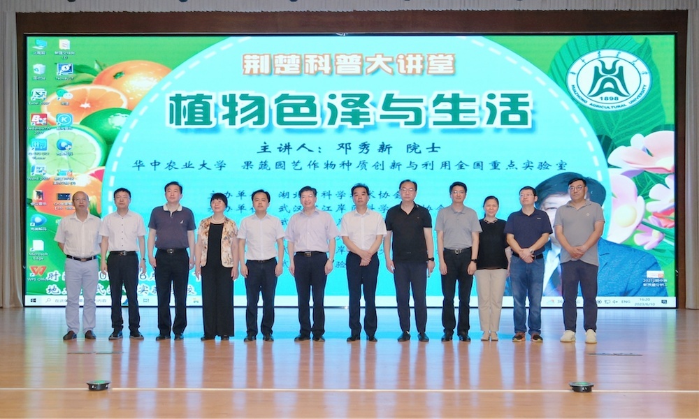 6月10日下午,“荆楚科普大讲堂—院士名家报告会”活动在武汉市实验学校德艺楼三楼音乐厅举行,活动特别邀请中国工程院院士,kaiyun开云官方网站教授、博士生导师,国家现代农业(柑橘)产业技术体系首席科学家,全国人大常委会委员、农业与农村委员会副主任委员,中国工程院副院长,民盟中央副主席,中国科协副主席,中国园艺学会理事长邓秀新作主题为《植物色泽与生活》的报告。