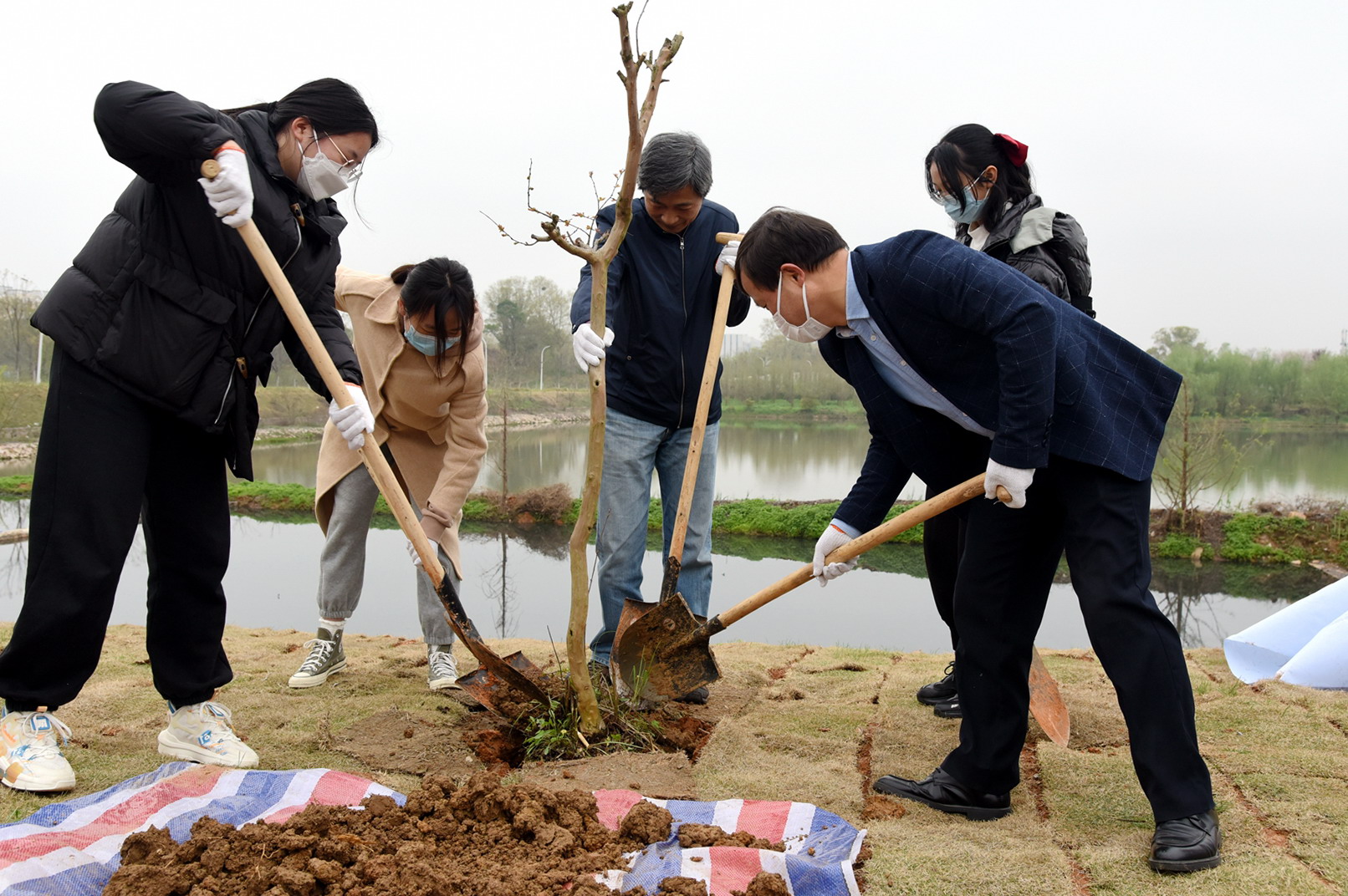 南湖新闻网讯(记者 川竹)春风拂绿,万象盎然。3月18日,kaiyun开云官网在香樟路与学府路交叉口野芷湖绿道旁开展植树活动。校领导高翅、廖济忠、王建鸿、郭刚奇,校绿化工作委员会成员,青年教师代表和学生代表等40余人参加了植树活动。