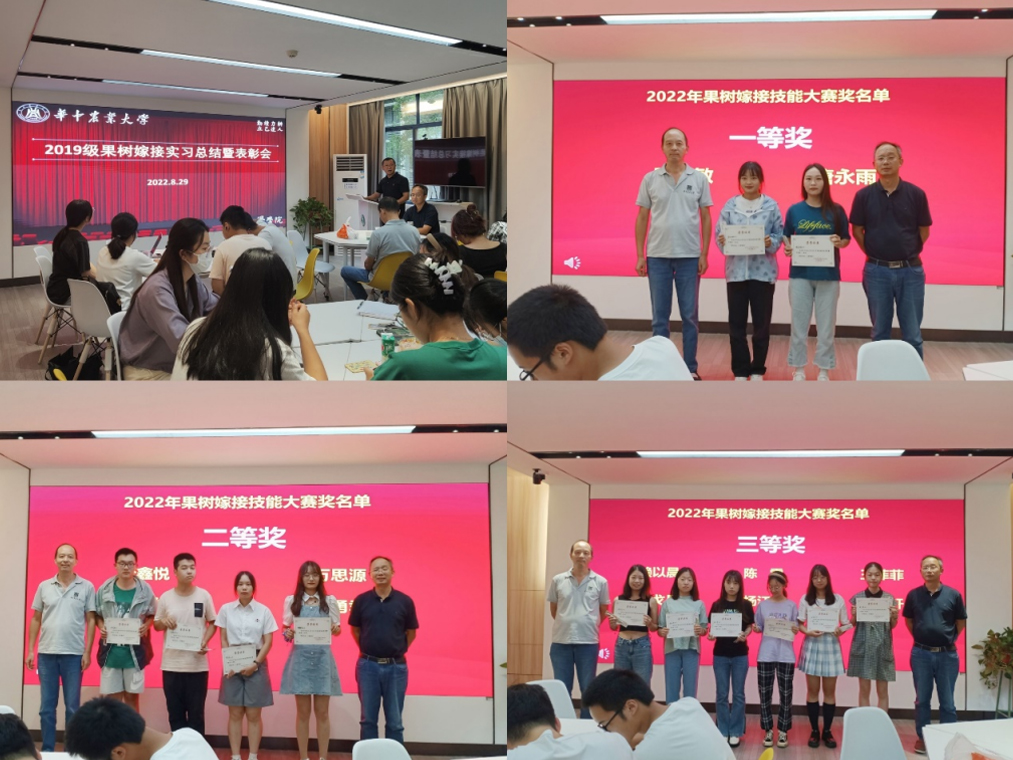 8月29日上午,2019级果树嫁接教学实习总结暨表彰会在园林北楼虚拟仿真教室召开。实习同学们分成九个小组,采用幻灯片和视频的方式,将理论知识与实践经验相结合,全面展示了果树嫁接实习中的所学所获、所思所感。第一小组的汇报幽默有趣,带大家领略了2019级果树小豆班的流量密码;第五小组创作的嫁接实习魔改版视频《POP!》一出场便氛围感十足,将整场汇报推向高潮;此外,贾慧轩同学为大家精心献上了改编的《孤勇者(果树嫁接版)》;万思源同学另辟蹊径,创做的视频《接穗的猜想》,从接穗的角度带领大家回顾并思考这段汗水与快乐交织的日子……小组汇报结束后,刘永忠老师和郭大勇老师为嫁接竞赛获奖同学颁奖,殷光敏和唐永雨获得一等奖,樊鑫悦等四位同学获得二等奖,赖以晨等六位同学获得三等奖。